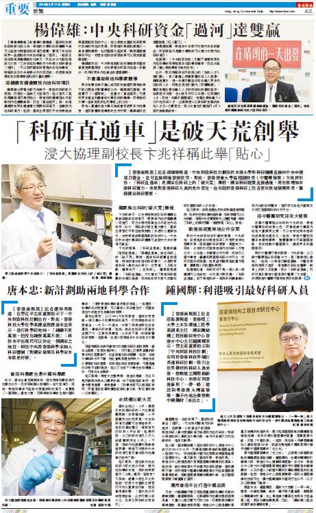 鍾國輝指,在新政策下,國家科研資金「過河」,可加快相關項目科研進度。他解釋,以前資金不能過境,香港科研人員申請國家項目後須到內地作研究。惟部分香港科研人員都在大學任教,每月只有幾天回內地做研究,進度比較慢。