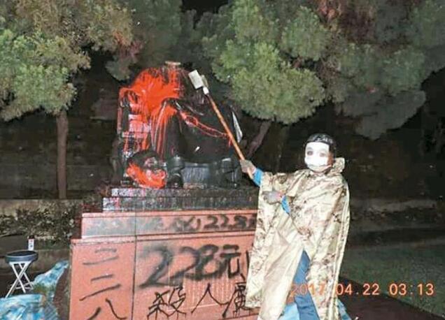 67岁郭志刚去年4月凌晨和同伙持锯子、菜刀等物,砍断蒋介石铜像头部,另泼红漆破坏,写上“杀人魔”等,并捧铜像头拍照发上网。事后,其所属“独派”团体承认犯案并宣称,要用蒋介石头向日本工程师“八田与一”献祭。台检方随后对相关人员进行起诉。