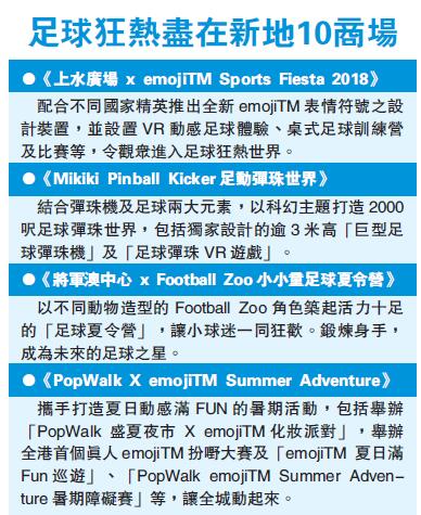 【香港商報网訊】四年一度世界盃體壇盛事即將下月展開,新鴻基地產將軍澳旗艦商場東港城將再創先河,在商場8000尺的中庭搭建巨型室內足球影院,加上全新高清巨型LED屏幕,為球迷呈獻連場精彩戲碼,球迷們透過網上登記,即可享至尊享受會所級按摩座椅、劇院級視聽組合、酒店級自助盛宴。新地10大商場亦聯合斥資1600萬元宣傳推廣費推出一連串足球主題活動,包括「30萬元大抽獎」及「隨身球迷套裝」禮品換領,齊齊與全港市民投入熾熱足球狂熱。