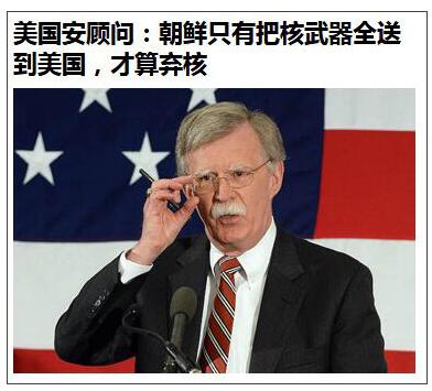 有关朝鲜半岛无核化,被视为“鹰派”人物的美国国安顾问博尔顿曾在上月底至本月中旬接连两次发声。