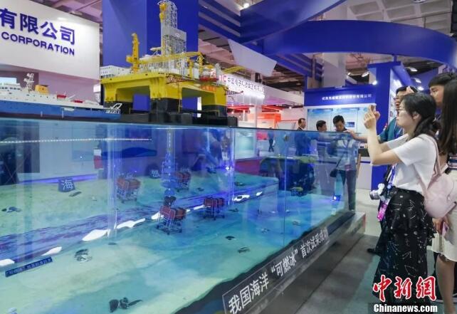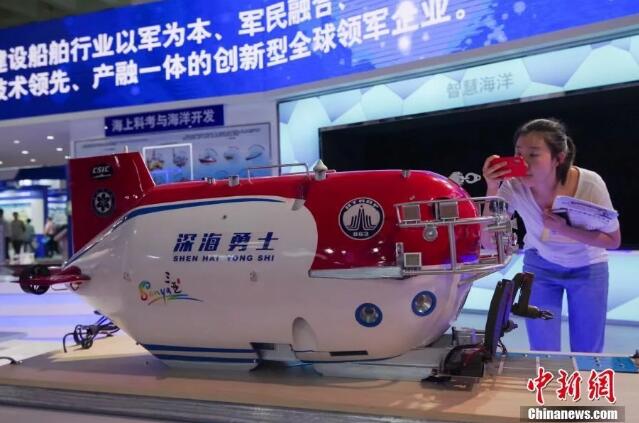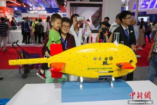 5月17日,第二十一届中国北京国际科技产业博览会在中国国际展览中心开幕。本届科博会有1600多家科技企业参展。联合国工业发展组织、加拿大、法国、德国、美国等14个国家和地区的17个代表团出席科博会各类活动。图为“探索4500”水下机器人模型。该机器人能够水下续航20小时,工作水深达4500米。