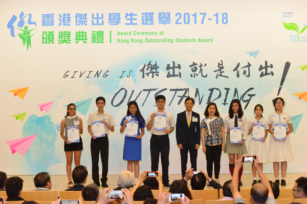 【香港商報網訊】記者葉佩瑜報道:由青苗基金主辦的「香港傑出學生選舉」昨午舉行頒獎禮,嘉許9名得獎學生,並向一名熱心公益的學生頒發社會服務獎。主禮嘉賓港鐵董事局主席馬時亨致辭時分享,傑出就是付出,付出是營造有意義人生的基石,並讚揚得獎者是香港未來的希望,要繼續努力。