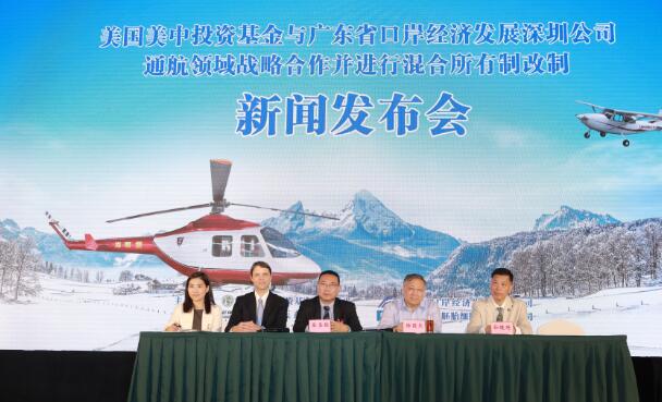 【香港商报网讯】记者朱辉豪报道:5月19日,美国美中投资基金有限公司与广东省口岸经济发展深圳公司在深圳联合召开新闻发布会,双方就共同在通航领域开展战略合作,并进行混合所有制改制。在本次发布会中,美中投资基金、口岸公司、南方工贸、中国军创五矿集团、瑞维斯等多方代表分别签署战略合作协议,中国通用航空飞机制造将落地深圳、落地口岸。