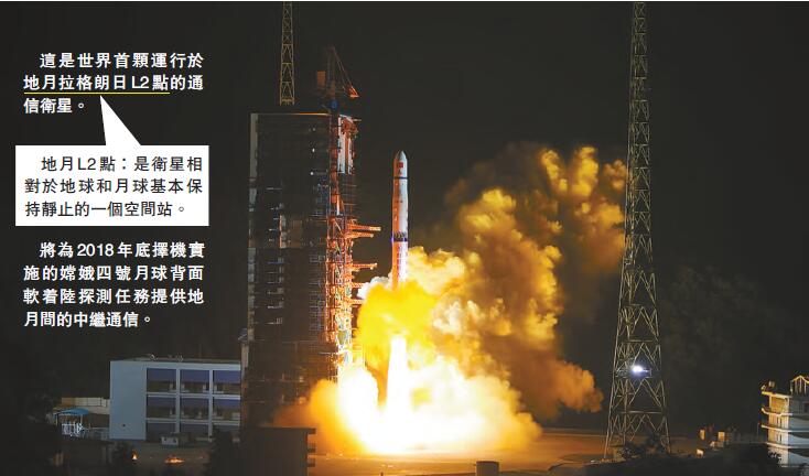 【香港商報网訊】北京時間昨天凌晨,中國在西昌衛星發射中心用長征四號丙運載火箭,成功將探月工程嫦娥四號任務鵲橋號中繼星發射升空。鵲橋號中繼星是世界首顆運行於地月拉格朗日L2點的通信衛星,將為年底擇機實施的嫦娥四號月球探測任務提供地月間的中繼通信。此次發射任務是中國長征系列運載火箭第275次發射,也是長征四號丙運載火箭在西昌衛星發射中心首次執行任務。
