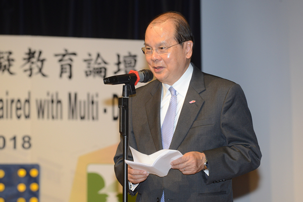 【香港商報网訊】記者馮仁樂報道:政務司司長張建宗昨日出席心光恩望學校舉辦的視障及多重障礙學生教育論壇致辭時表示,政府一直積極推動特殊教育,在2018/19年度預算投放在特殊教育的開支高達27億元,包括優化特殊學校的社工及護士人手編制、提供現金津貼、推動教育措施及實踐電子學習。