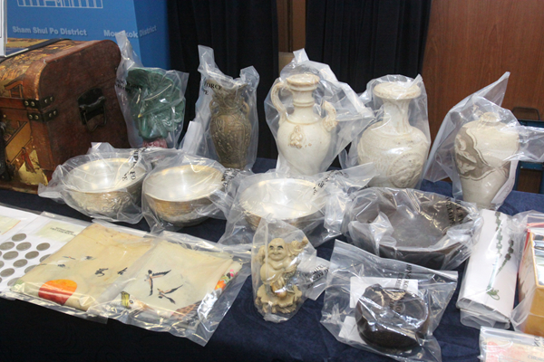 檢獲的古董包括花瓶和古碗等物。