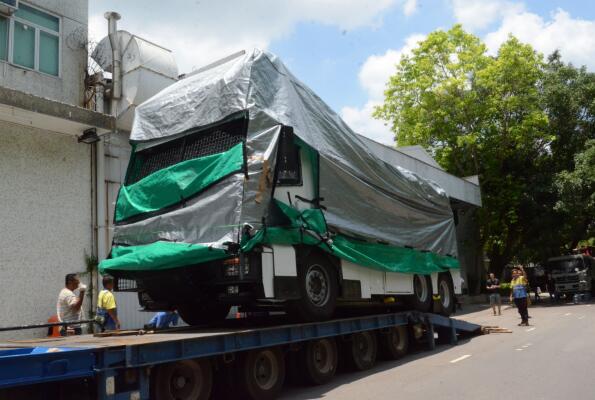 據悉,「水炮車」昨早經水路抵達葵涌貨櫃碼頭,其後運至代理商位於新界北區的維修中心停放。消息指,「水炮車」其後會接受機電署檢測,並加置警隊標誌等,再運至粉嶺機動部隊總部進行訓練。