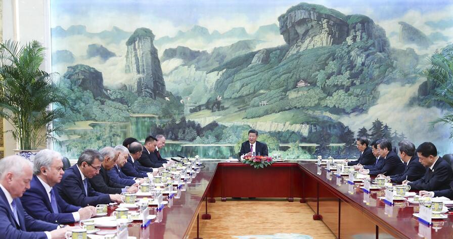5月22日,国家主席习近平在北京人民大会堂集体会见来华出席上海合作组织成员国安全会议秘书第十三次会议的外方代表团团长。新华社
