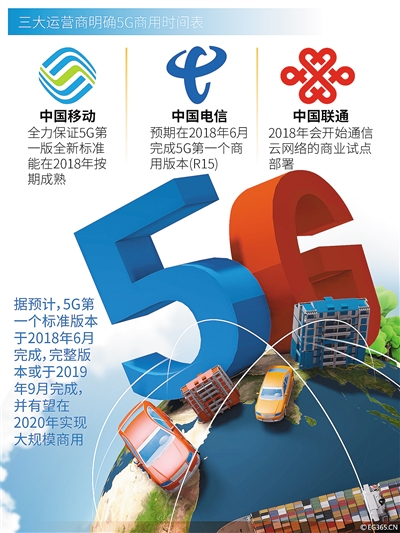2017年11月24日,中国移动在其全球合作伙伴大会上表示,预计今年发布首版5G商用产品要求,2019年推出首批预商用终端,2020年推出商用产品。