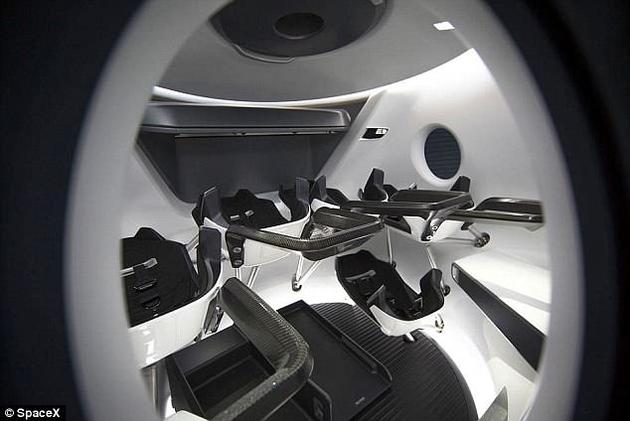 龙飞船高约20英尺(约合6.1米),直径12英尺(约合3.6米),一次最多可搭乘七人。载人版龙飞船装有先进的紧急逃生系统(已于今年年初完成测试)。发生紧急情况时,能够帮助宇航员迅速安全撤离,仅需五秒即可带宇航员逃至500米之外。且途中产生的重力加速度仅和过山车差不多,对人体影响很小。龙飞船还装有环境控制与生命支持系统(简称ECLSS),可将舱内温度维持在18至26度之间,为乘员提供舒适、安全的环境。飞船安有四扇舷窗,乘客可坐在由最高级碳纤维和阿尔坎塔拉布料制成的座椅上,透过窗户饱览太空美景。飞船外还配有酚充填碳烧蚀材料(PICA)制成的隔热层。此外,龙飞船的显示屏还将提供飞船性能的实时信息,包括飞船所处位置、目的地信息、以及舱内环境信息等等。