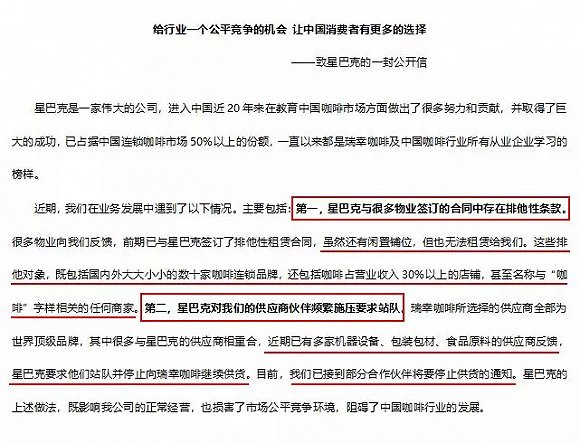 根據公開信,瑞幸咖啡認為星巴克的前述行為已經涉嫌違反反壟斷法第14條和第17條的有關規定。