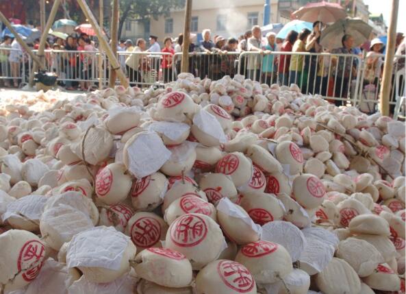 太平清醮值理會介紹,三座用做搶包山比賽的包山,由大約2萬個平安包做成,在比賽完後都會一一拆下,存放於北帝廟遊樂場,清晨6時半,已有市民到來排頭位領平安包。原定早上9時開始派發,但大會見未夠8時已有近百人排隊,加上天氣酷熱,特別提早8時半開始派發。