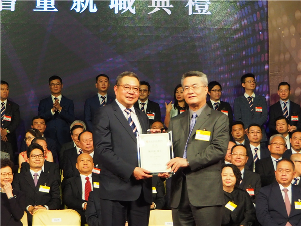 黃蘭發(右)頒發主席聘書予陳幼南。
