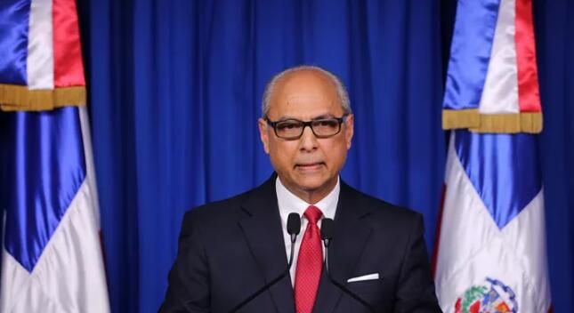 ▲4月30日,多米尼加政府法务顾问弗拉维奥·达里奥·埃斯皮纳尔在总统府召开的记者会上发言。多米尼加共和国政府当地时间4月30日晚间宣布,多米尼加与中国建立外交关系。(多米尼加共和国总统府)