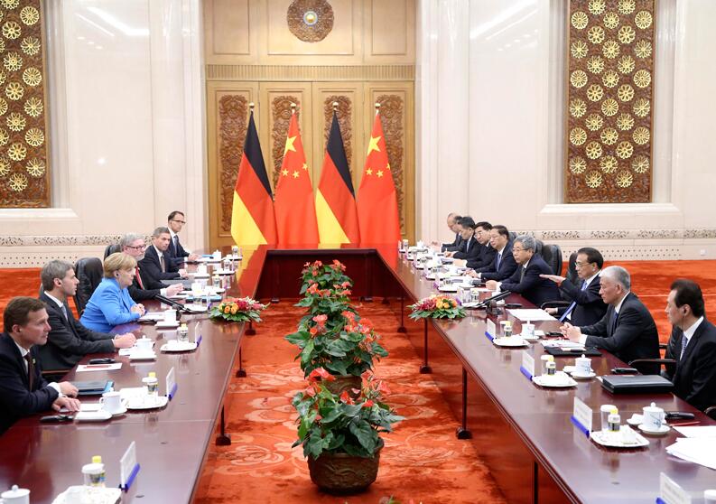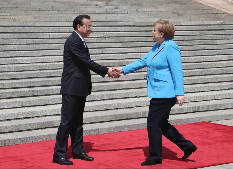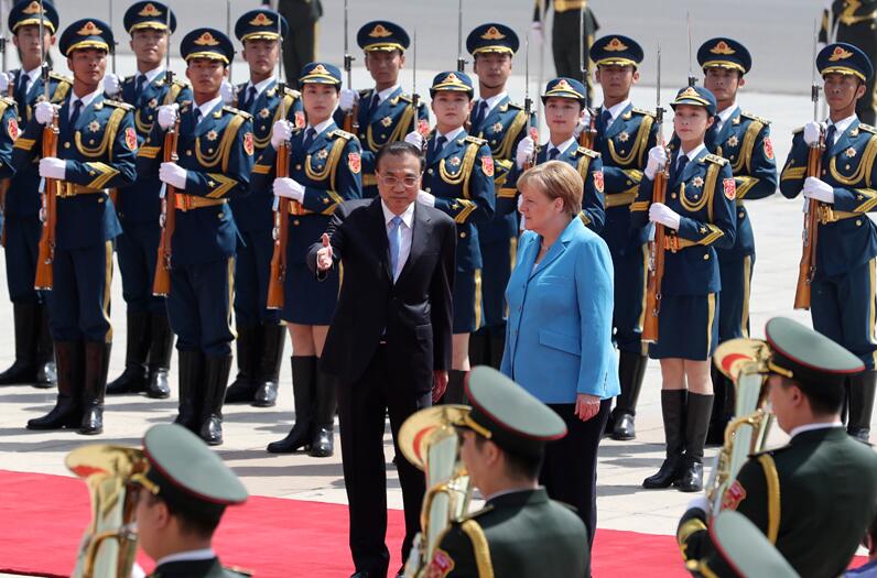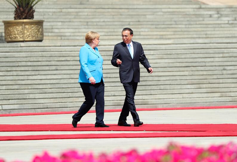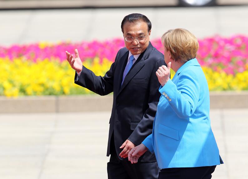 国务院总理李克强5月24日上午在人民大会堂东门外广场举行仪式,欢迎德国总理默克尔对华进行正式访问。欢迎仪式前,李克强同默克尔举行早餐会,就中德、中欧关系以及共同关心的问题深入交换意见。这是默克尔出任德国新一届政府总理后首次访华,也是她作为德国总理第11次访华。