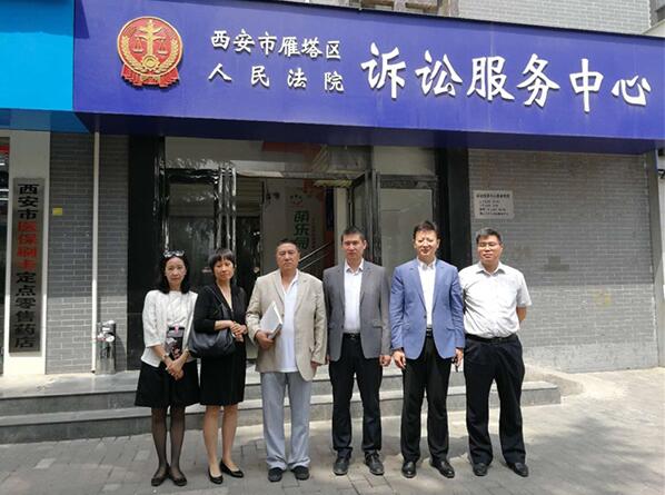 叶挺孙辈叶晓梅、叶小燕、叶大鹰、叶铁军(从左至右)和两位律师在雁塔区法院诉讼中心提交材料时合影