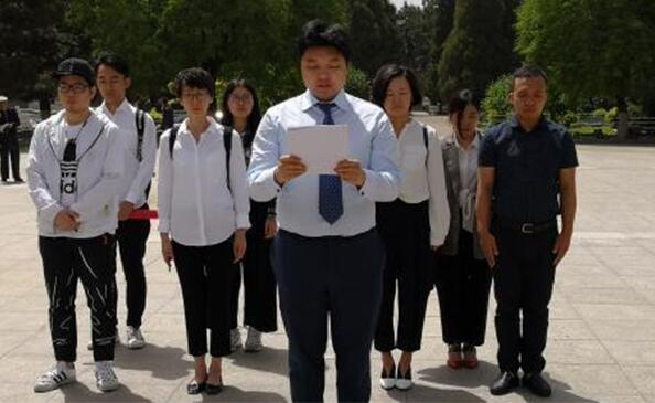 暴走漫画CEO任剑带领团队在董存瑞烈士纪念碑前读道歉信