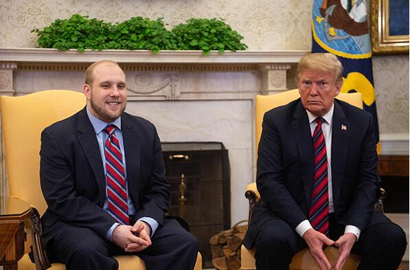 26日,美国总统特朗普会见被委内瑞拉政府释放的美国公民美乔舒亚·霍尔特。