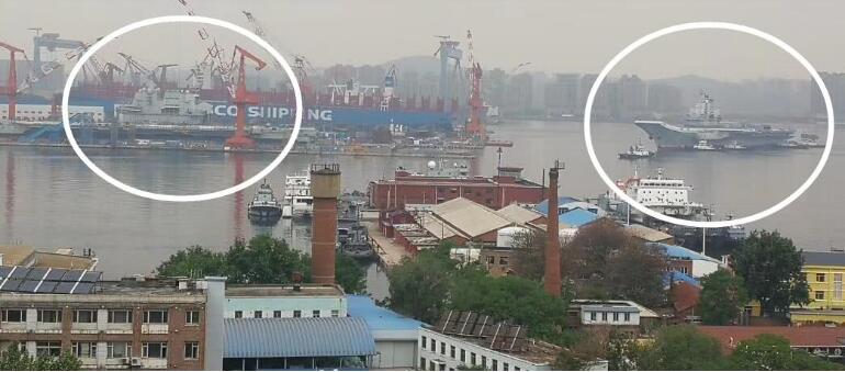 首次同框!中国首艘国产航母与辽宁舰相聚大连