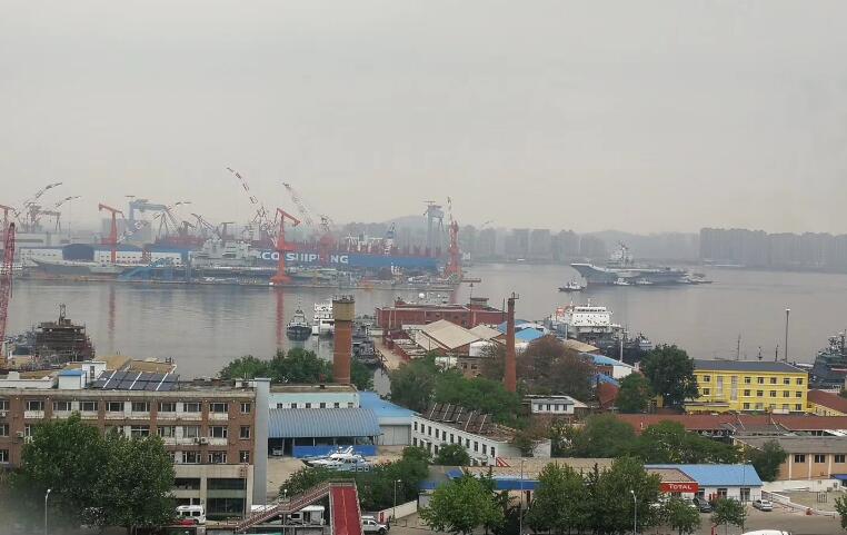 5月27日,一张拍摄地点为大连造船厂附近的照片在网上流传,照片显示中国海军“辽宁”号航母已经抵达大连旅顺军港,与正在船坞内进行维护的国产航母首次“同框”出现。