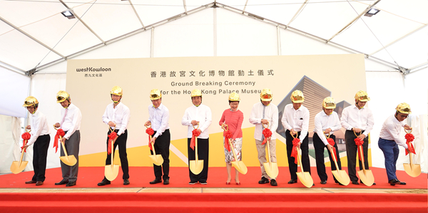 昨日,位於西九文化區的香港故宮博物館舉行動土儀式,邀請行政長官林鄭月娥、故宮博物院院長單霽翔、國家文物局副局長劉曙光、民政事務局局長劉江華、西九文化區管理局董事局主席唐英年、香港故宮文化博物館董事局主席陳智思等人擔任主禮嘉賓。