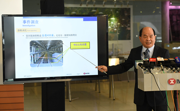 港鐵車務營運總管李聖基解釋車輪偏離路軌調查報告內容。記者崔俊良攝