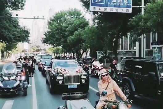 5月27日下午,一段10秒长的视频引爆网络——天津市河东区海河东路上,一列婚礼车队正准备出发,车队中间是小车,两侧是哈雷摩托车,一辆长江750三轮摩托在车队最前端。三轮摩拖车上的男子,身穿日军军服,背着一把三八大盖(三八式步枪),对着镜头双手竖大拇指。