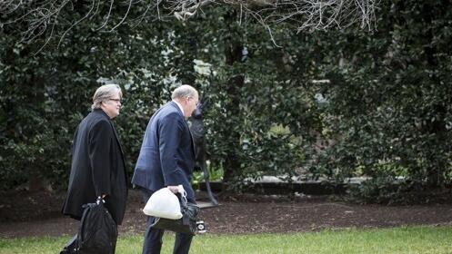 资料图片:右为美国白宫副幕僚长哈金。(韩联社/欧新社)
