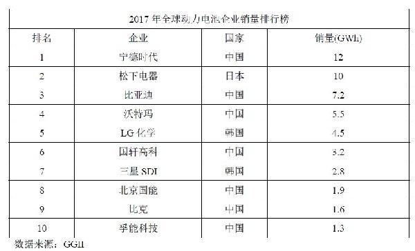事实上,直到2015年,宁德时代的动力电池系统销售还仅为2.19GWh,在国内动力电池企业中排名第四。 而这一数字在2017年翻了近6倍,近12GWh的动力电池系统销量让宁德时代一举成为国内第一的动力电池生产商,且超越了松下(特斯拉供货商)成为世界第一。