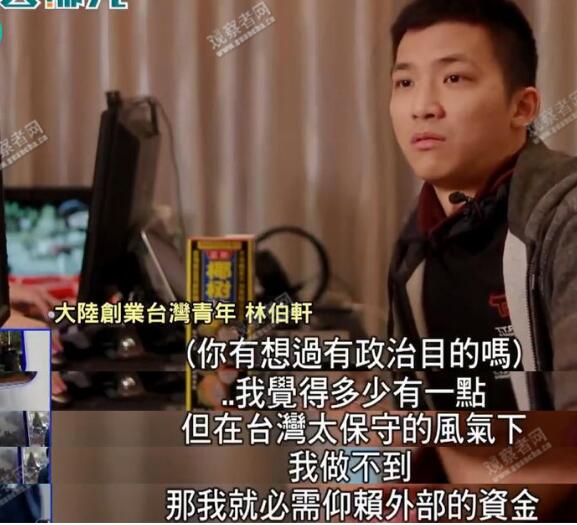 林伯轩回答称:“……我觉得多少有一点。”但也补充道:“但在台湾太保守的风气下,我做不到。那我就必须仰赖外部的资金。”
