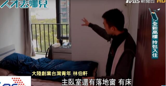 TVBS记者又来到林伯轩所住的台湾青年免费人才公寓,两室一厅,家具齐全,拎包入住。