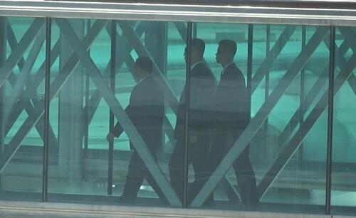 金英哲一行抵达北京首都机场。(韩联社)