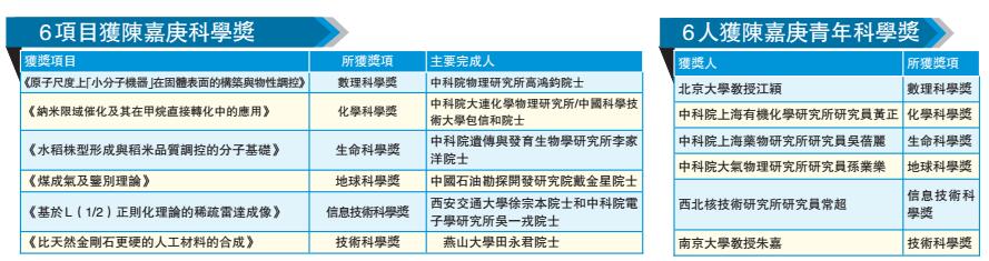 當日下午,2018年度陳嘉庚科學獎、陳嘉庚青年科學獎同在北京揭曉並頒獎,共有6個項目獲得陳嘉庚科學獎,6位青年科學家獲得陳嘉庚青年科學獎。