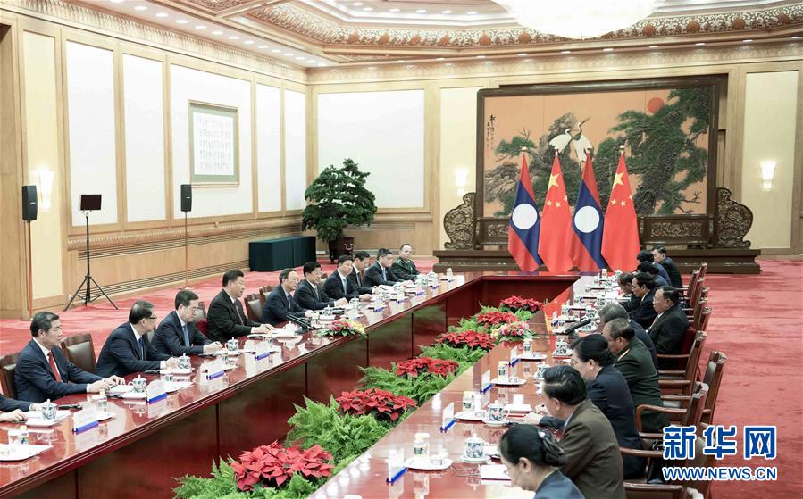 习近平指出,我和本扬总书记同志过去几年经常见面,2017年还实现了年内互访,所达成的诸多共识正在得到积极有效落实,给两国人民带来实实在在的利益。2013年我首次提出中老是具有广泛共同利益的命运共同体,得到了老方的高度赞同。我同本扬总书记同志就中老共同构建具有战略意义的命运共同体达成重要共识,并写入两国联合声明,在两党两国和两国人民当中得到广泛认同,展现出对两党两国关系的重要引领作用,推动中老关系步入历史最好时期。