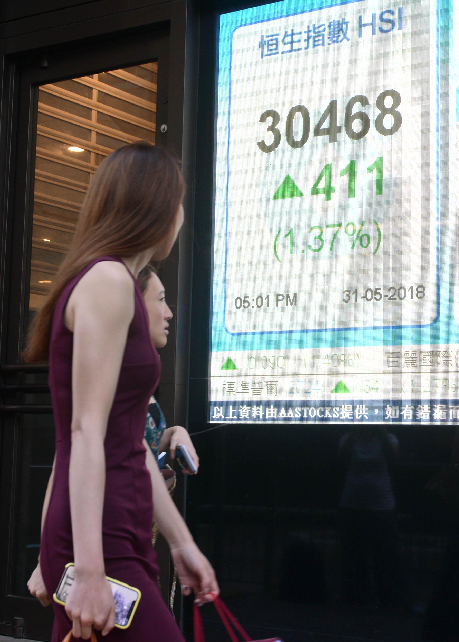 【香港商報訊】記者吳天淇報道:MSCI指數換馬帶動恒指昨收市升411點,報30468點,港股收市競價時段成交大幅飆升至962億元,令全日總成交額達2037億元。惟受到意大利政局、中美貿易談判及美朝關系等多個因素影響,港股整個5月仍要累跌340點或1.1%,未能擺脫五窮魔咒。