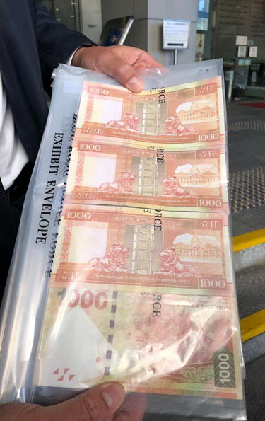 警方展示道具鈔票,真嘅一樣。