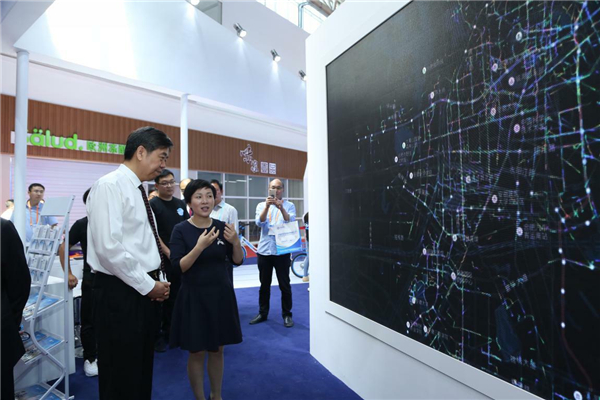 哈罗单车COO韩美向交通运输部党组成员李建波介绍哈勃城市慢行交通大数据平台