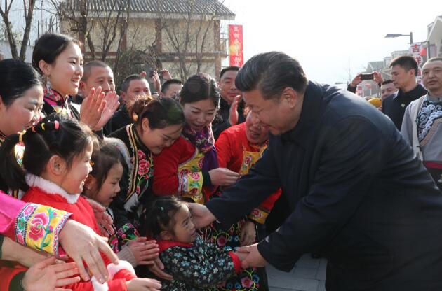 习近平在黑龙江同江市八岔村,同身着民族服装,正在学习赫哲族特有的伊玛堪说唱艺术的村民们亲切交流。