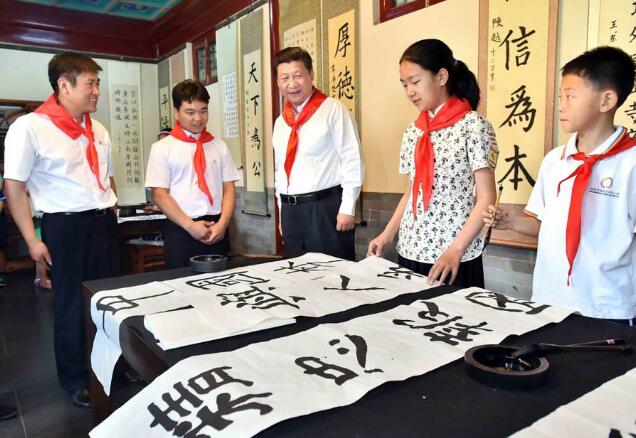 在北京市海淀区民族小学,看到孩子们写的“精忠报国”,习近平说:“我从小就受这4个字影响,四五岁时妈妈买了小人书,给我讲‘精忠报国、岳母刺字’的故事......精忠报国,是我一生的目标。”