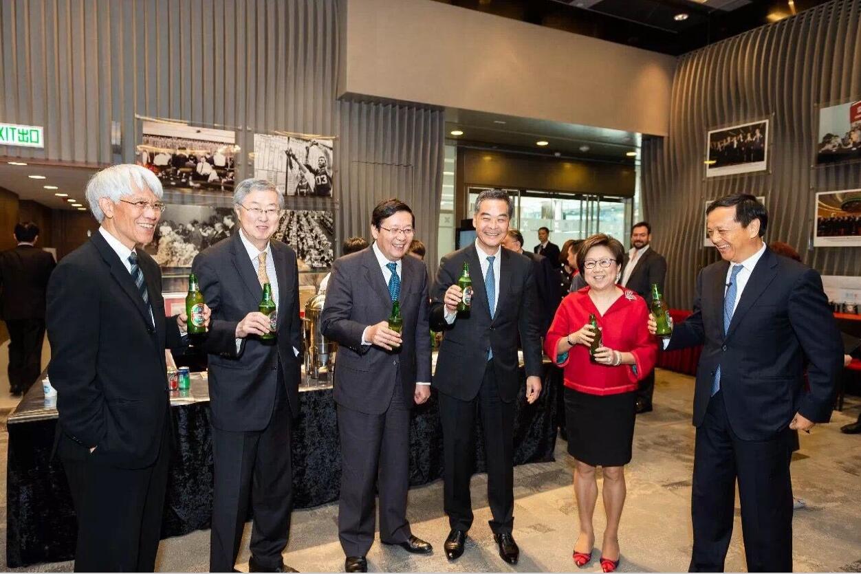 夏天炎炎,港交所還專門安排了首隻來上市的H股「青島啤酒」給各位大咖潤喉,十分切合論壇主題。初時,嘉賓們還有點靦腆,平時喜歡「啤啤距」的小川行長豪爽地先端起酒樽,其他人也就沒有那麼拘緊,連唯一的女將查太也加入隊伍中,原本說自己不喝啤酒的任總在眾人的勸說下,也一起舉杯為青啤做廣告。