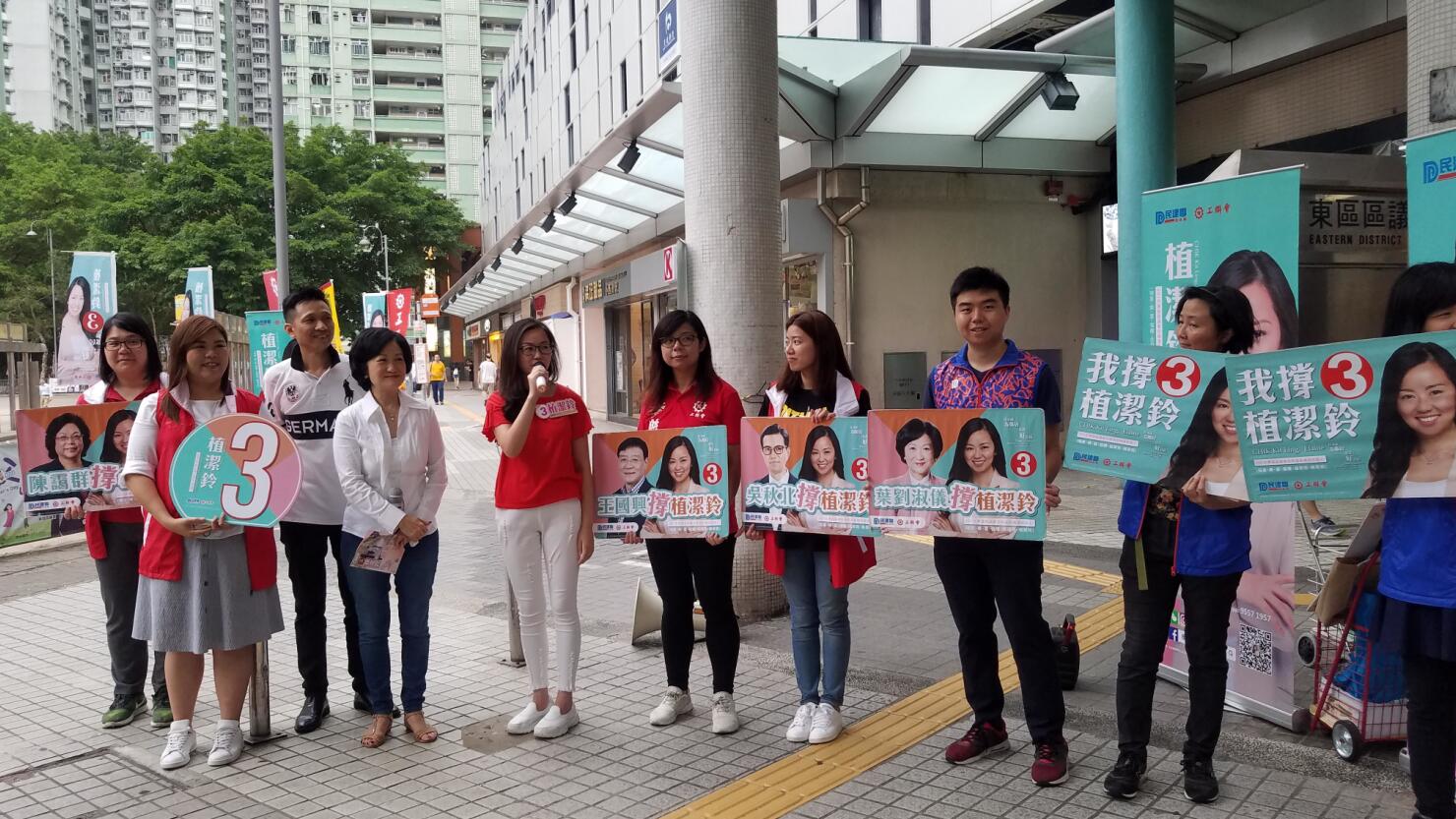 【香港商報网訊】記者何加祺報道:東區區議會佳曉區補選將於本月10日進行,候選人之一的民建聯地區干事植潔鈴昨日在小西灣恏設街站拉票,獲新民黨主席葉劉淑儀到場支持。葉劉淑儀表示,植潔鈴是一個有經驗的地區工作者,而且對區內環境十分熟悉。區議會需要有年輕有為的人士做實事,希望植潔鈴當選為社區注入新力量。