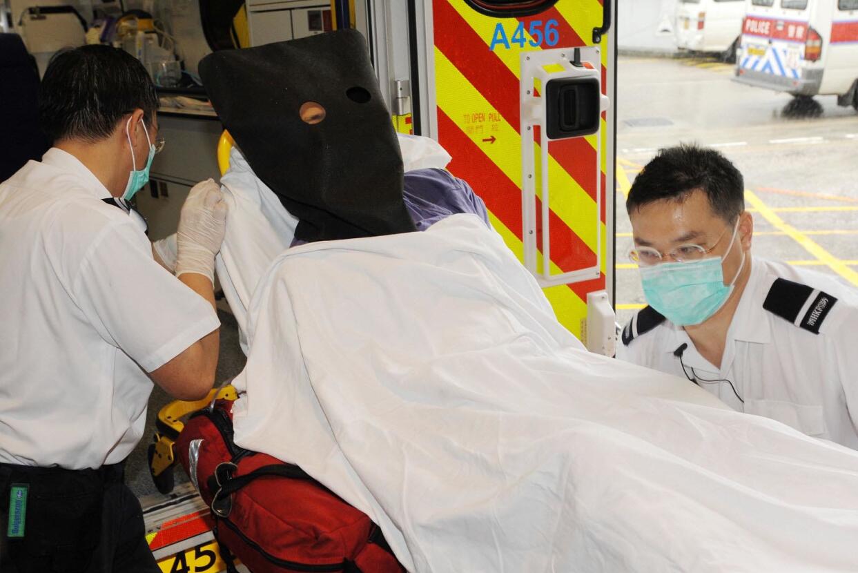 男死者黄志诚在2010年同样以同样以通渠水淋前任妻子时受伤,被捕后黑布蒙头送院治理。(资料图片)