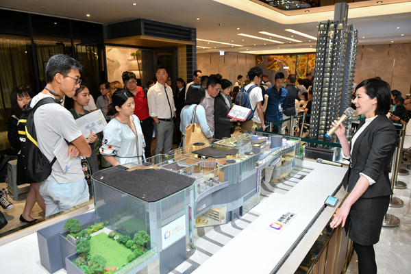 恒地西九項目「利奧坊.凱岸」上周末開放示範單位及展銷廳,可見人頭湧湧。