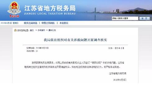 4日,江苏省无锡市地税局官方微博发文称,对于大家关注的问题,已按照国家税务总局和江苏省地方税务局的要求依法开展调查核实。如发现违反税收法律法规的行为,将严格依法处理。