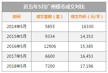 与近五年的楼市成交对比,今年5月网签量在近5年中位列第三位,分别少于2015与2016年的5月成交量,但网签均价是近5年中最高的。尽管郊区成交量增大,而均价未降,这说明广州房价呈总体上升趋势。