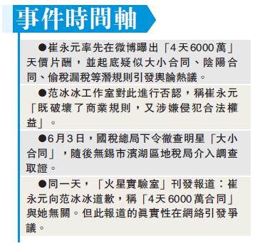 近日,電影《手機2》宣布將開拍,前央視主持人崔永元在其微博怒懟該電影的主創人員,並曝光了疑似相關藝人涉嫌偷稅漏稅的陰陽合同問題。有報道稱,相關合同指向演員范冰冰,雖然崔永元此後否認了這一點,但范冰冰涉嫌以陰陽合同逃稅一事,還是引發了各方關注。