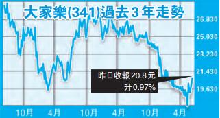 大家樂是否真的在撤出華東市場後,成功止血,在月底公布全年業績時將有分曉。近日股價從谷底回升,或反映有「春江鴨」在公布業績時,先行看好大家樂下半年業績表現。大家樂近日跌至17.8元後,急速反彈,可在20.5元吸納,上望24元,跌穿18元止蝕。