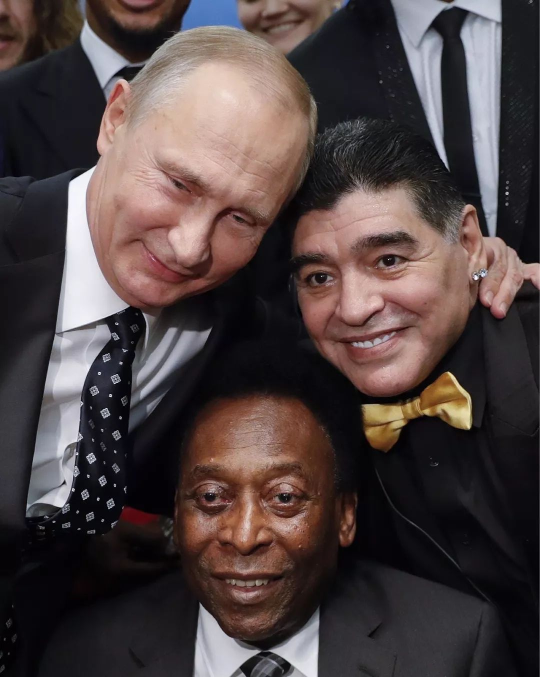 △2017年12月1日,普京在2018年世界杯分组抽签仪式上与两代球王合影。