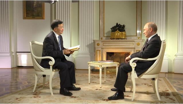 当地时间5月31日晚,在出席上海合作组织成员国元首理事会青岛峰会并对中国进行国事访问前夕,俄罗斯联邦总统普京在莫斯科克里姆林宫接受了中国中央广播电视总台台长慎海雄的独家专访。