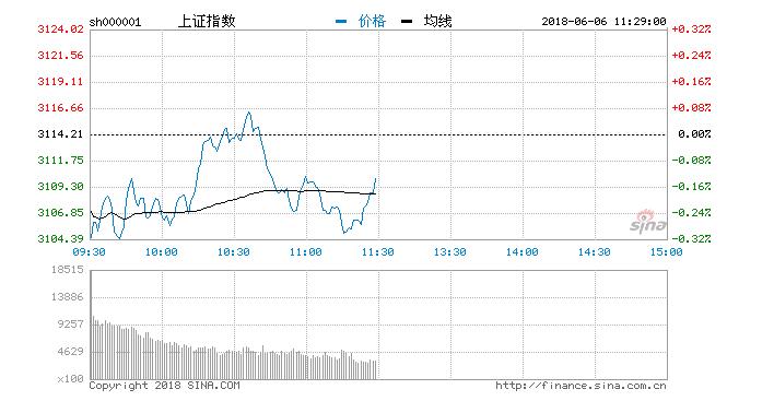 6月6日早间,两市行情低迷,三大股指低开后均呈震荡整理走势。有色股活跃,但金融、地产等权重板块萎靡拖累沪指。题材股延续昨日热度,知识产权保护、富士康、小米、苹果等概念股均有表现,其中,科技类个股多股涨停。截止午间收盘,沪指报3109.61点,跌幅0.15%,深成指报10367.41点,跌幅0.18%;创指报1742.11点,跌幅0.23%。